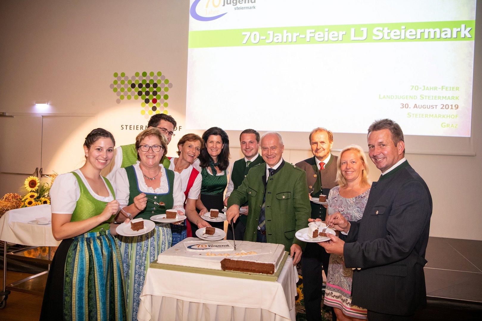 Bei der 70-Jahr-Feier am 30. August 2019 am Steiermarkhof feierten rund 300 ehemalige FunktionärInnen, aktuelle SpitzenfunktionärInnen und zahlreiche Ehrengäste 70 Jahre Landjugend Steiermark. Die Festveranstaltung lieferte einen Rückblick auf sieben Jahrzehnte erfolgreiche Jugendarbeit durch die Landjugend Steiermark. Zugleich bot sie aber auch die Gelegenheit, die gegenwärtige Landjugend-Arbeit hautnah mit zu erleben und lieferte einen kurzen Ausblick in die Zukunft der größten steirischen Jugendorganisation im ländlichen Raum.