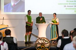 In Vertretung von Landeshauptmann Hermann Schützenhofer unterstrich unser Agrarlandsrat Herr ÖR Hans Seitinger bei seinen Grußworten, wie wichtig ehrenamtliches Engagement und die Mitarbeit in Vereinen ist. Der Landesrat dankte allen Funktionären der Landjugend, die in den letzten 70 Jahren aktiv unser Land mitgestaltet haben. Landwirtschaftskammerpräsident ÖR Franz Titschenbacher gab in seiner Laudatio einen Überblick über die 70jährige Geschichte der Landjugend und unterstrich die gute Zusammenarbeit mit der Landwirtschaftskammer. Zugleich ging er auf die Wichtigkeit der Landjugend als Brückenbauer zwischen Produzenten und Konsumenten ein. Fotocredit: Katarina Pashkovskaya