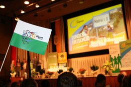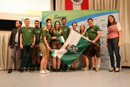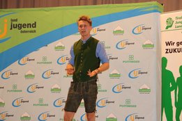 Grund zum Feiern hatten auch unsere RednerInnen. Auch hier erfolgte die Qualifikation über den Landesentscheid Anfang Mai, angetreten wurde in vier Wertungsklassen. Beim „Neuen Sprachrohr“ können Einzelpersonen als auch Teams bis zu vier Personen an den Start gehen. Dabei geht es darum, die Rede möglichst kreativ darzubieten. Florian Timmerer-Maier aus dem LJ Bezirk Murau wurde Anfang Mai zum Landessieger gekürt, beim Bundesentscheid holte er sich den fünften Platz.