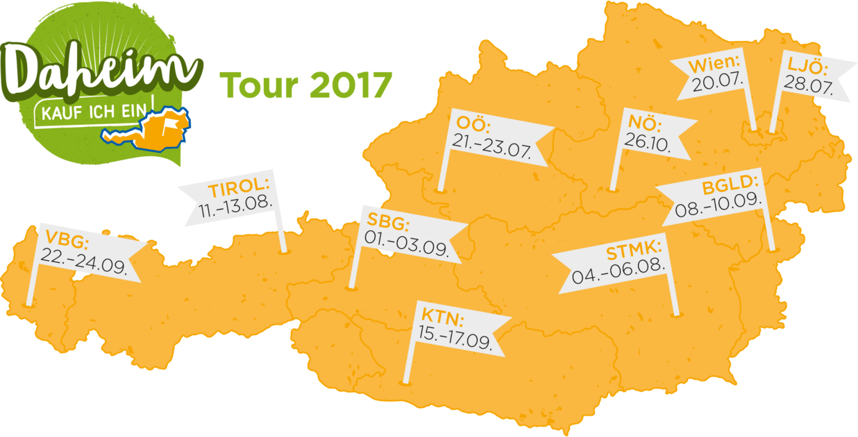 „Daheim kauf ich ein“ – dieses Motto stellt die Landjugend 2017 ins Zentrum ihrer Arbeit, um mit vielfältigen Aktionen und Veranstaltungen für das Einkaufen in der Region zu sensibilisieren und die regionale Wirtschaft zu stärken. Bei einer steiermarkweiten Verteilaktion von 04.-06. August 2017 wird die Bevölkerung auf die Wichtigkeit des heimischen Einkaufs aufmerksam gemacht.