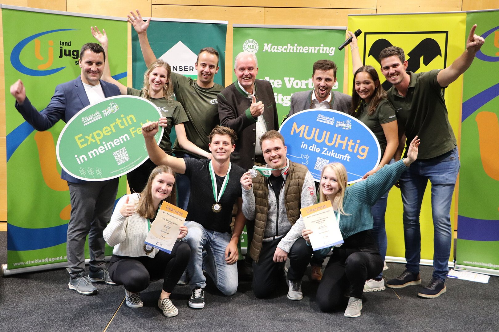 Der Jubel bei der Siegerehrung war groß, als die diesjährigen Landessieger:innen verkündet wurden. Agrargold holten sich mit einem minimalen Vorsprung von 1,5 Punkten die Knittelfelder Johannes Pfaffenthaler und Magdalena Bärnfeind. Ob das ein Zeichen für den Bundesentscheid nächstes Jahr ist?!