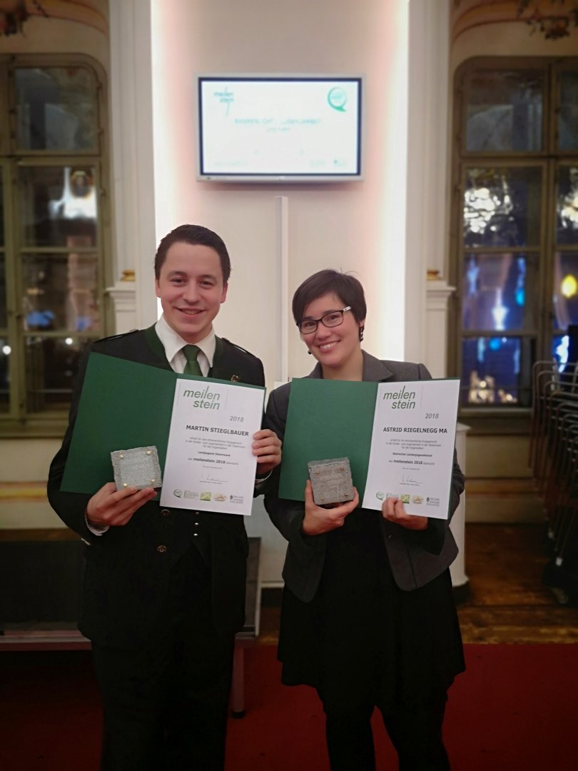 Martin hat in seiner Landjugendlaufbahn Funktionen auf allen vier Ebenen ausgeübt. Angefangen hat er 2005 als Pressereferent und ab 2009 als Obmann in seiner Ortsgruppe Groß St. Florian. Es folgten Aufgaben als Bezirksobmann und als Landesobmann Stellvertreter, bevor er 2015 zum Bundesleiter der Landjugend Österreich gewählt wurde. Auch Astrid war zehn Jahre lang Landjugendfunktionärin. Begonnen hat sie in ihrer Ortsgruppe St. Johann im Saggautal, später wurde sie zur Bezirksleiterin gewählt. Auch im Landesvorstand war sie drei Jahre lang aktiv. Zusätzlich hat sie sich fünf Jahre lang als Präsidiumsvorsitzende des Landesjugendbeirats engagiert und war somit die Stimme für die verbandliche Jugendarbeit in der Steiermark. Der Meilenstein soll dieses Engagement aufzeigen und wird jedes Jahr rund um den Tag des Ehrenamts verliehen. Heuer fand die Veranstaltung bereits zum 10. Mal statt.