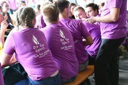 Das Motto „I want to break free – Aufbruch für di und mi“ wurde nicht nur in der Messe immer wieder aufgegriffen, wie etwa beim Bußakt, der Lesung oder dem Evangelium, sondern auch bei der Abschlussaktion.