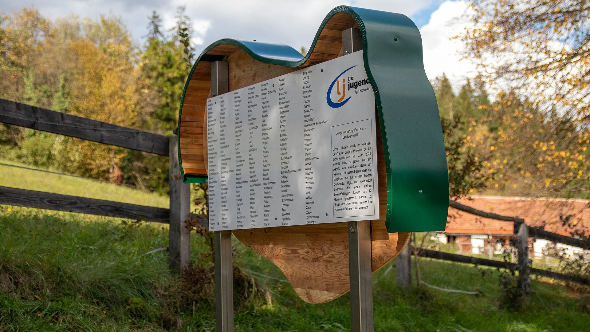Das Projekt ”Junge Herzen, Große Taten - Landjugend hilft“ repräsentiert den Gemeinschaftssinn und die soziale Verantwortung unserer Gemeinden. Ein Ziel war es, das Ortsbild zu verschönern und gleichzeitig einen Beitrag f¨ur die Region zu leisten. Im Mittelpunkt stand die Gestaltung von jeweils drei neuen Ortstafeln f¨ur die Gemeinden Ligist und Krottendorf-Gaisfeld. Vordergrüundig war jedoch die Unterst¨utzung des neunj¨ahrigen Fabian aus Klein Gaisfeld. Die gesammelten Spenden sollen dazu dienen, ein neues Fortbewegungsmittel zu besorgen und beim rollstuhlgerechten Umbau des Hauses der Familie beizutragen. Die Landjugend hat durch ihren Einsatz gezeigt, wie bedeutend Hilfsbereitschaft und soziale Verantwortung sind. Mit vereinten Kr¨aften wurde ein wertvoller Beitrag f¨ur die Gemeinschaft geleistet, der uns alle mit Stolz erfüllt.