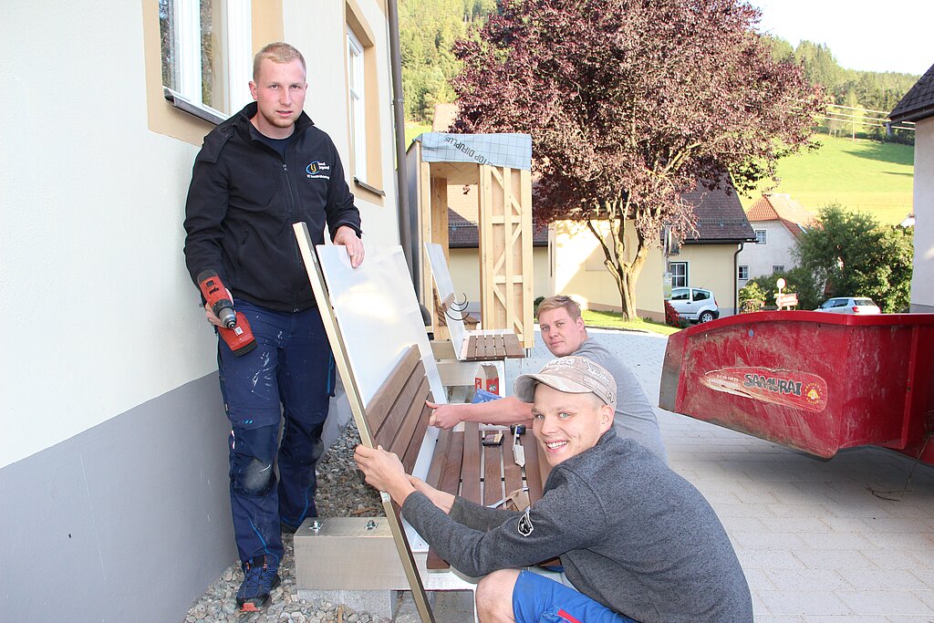 Da der Dorfplatz ein Treffpunkt für Jung und Alt ist, war es ihr Ziel, Sitzgelegenheiten und einen neuen, überdachten Wartebereich für öffentliche Verkehrsmittel zu errichten.