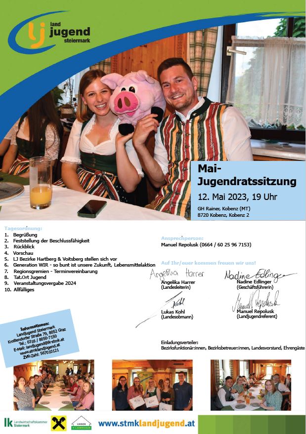 Bitte schickt uns eure Bewerbungen mit dem Bewerbungsformular bis spätestens Montag, den 3. Mai 2023 an landjugend(at)lk-stmk.at.