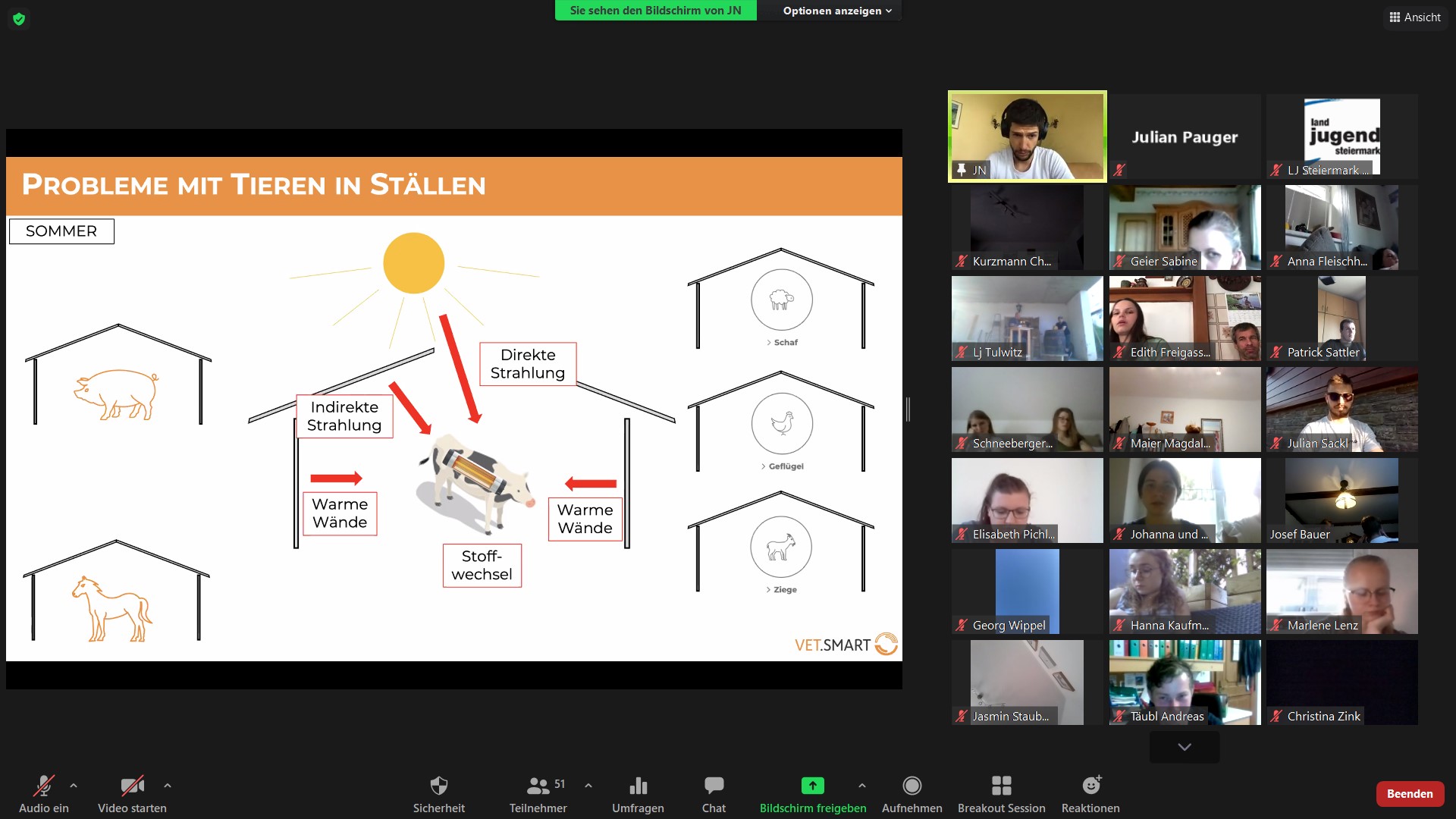 Folgende Themen wurden von DI Jakob Neumayer, Gründer von VET.SMART, einer Firma für Belüftungs- und Kühlungssysteme in Ställen, ausführlich behandelt: