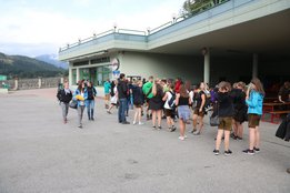 Rund 280 TeilnehmerInnen bei Fit for Spirit zeigen, dass die Wallfahrt auch für Jugendliche interessant ist. Sehr erfreut über die große Teilnahme und die ungebrochene Beliebtheit der bereits 15. Landjugend-Wallfahrt zeigte sich auch Pater Superior Mag. Dr. Michael Staberl OSB bei seiner Begrüßung. Der Weg der Wallfahrt war für manche kürzer, für manche länger, doch sie alle haben einen Teil des Weges zu Fuß zurückgelegt. Am längsten war eine Gruppe aus Deutschlandsberg unterwegs. Am achten Tag ihrer Wallfahrt erreichten sie nach 254 km und 9.999 Höhenmetern die Basilika. Je länger man unterwegs ist, desto mehr kann man in sich hinein hören und man kommt zum Nachdenken. Auf dem Weg trifft man aber auch immer wieder neue Menschen, auf die man sich einlassen, die man kennenlernen und mit denen man Spaß haben kann. Man ist nicht alleine unterwegs, der beschwerliche Weg wird in einer Gruppe zurückgelegt, die einen motiviert und mitträgt. So ist es auch im Leben. Wir sind auf dieser Welt, umgeben von Menschen, und es liegt an uns, uns auf unsere Mitmenschen einzulassen und Gemeinschaft zu erleben – dazu benötigt man gar nicht viel. Das strich auch Pater Mag. Bernhard Pesendorfer CM, Diözesanseelsorger der Jungen Kirche Steiermark, in seiner Predigt hervor. Gemeinsam mit den rund 280 Jugendlichen und dem stimmgewandten Chor der Landjugend Oberwölz (LJ Bezirk MU) feierte er die Abschlussmesse in der Basilika von Mariazell. Das diesjährige Wallfahrtsmotto „Rein ins Leben – Gemeinschaft erleben!“ begleitete die Landjugendlichen bereits auf den letzten Kilometern nach Mariazell in Form von bunten Sonnenbrillen, die zum einen die bunte Vielfalt an Menschen widerspiegeln sollten, zum anderen aber auch davor schützen, geblendet zu werden. Bei der Agape hatten die Mutigen unter den TeilnehmerInnen noch die Gelegenheit, der Fit for Spirit-Gemeinschaft großes Vertrauen entgegenzubringen und sich a lá „Stagediving“ in die Menge fallen zu lassen.