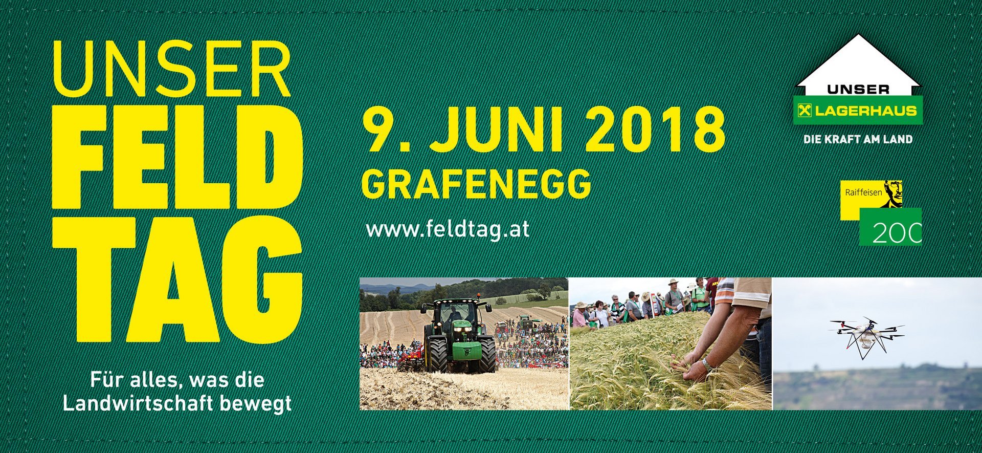 Beim Lagerhaus Feldtag am 09. Juni 2018 präsentieren die Lagerhaus-Genossenschaften in Grafenegg (NÖ) alles, was die Landwirtschaft bewegt. Bei freiem Eintritt gibt es unter anderem Maschinenvorführungen, Schauparzellen, rund 100 Aussteller und ein attraktives Rahmenprogramm.