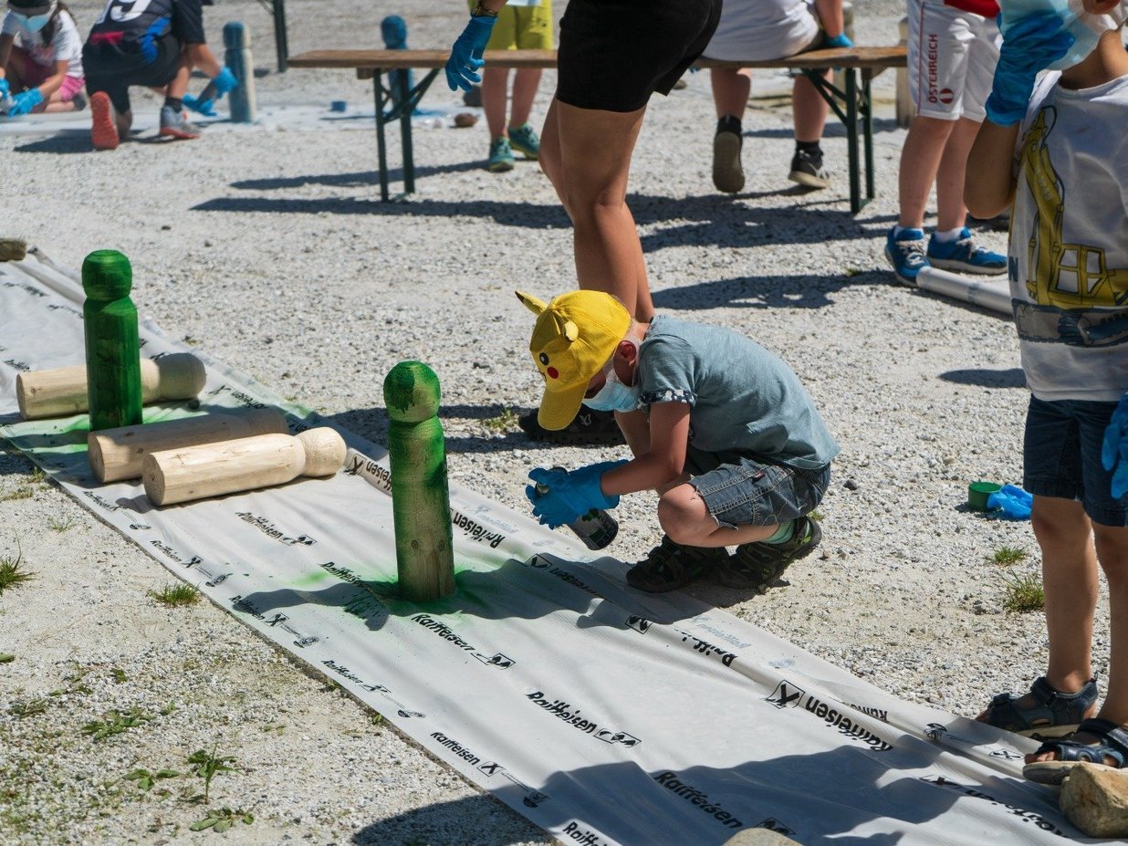 Der Projekttag am 13. Juni war ein besonderes Highlight: Die Kindergarten- und Volksschulkinder aus Pusterwald gestalteten das Spielfeld farbenfroh und kreativ, sodass das gesamte Bauwerk zum Leben erweckt wurde. Durch dieses Mitwirken entstand ein tiefer Bezug zum eigenen Heimatort – und ein sichtbares Zeichen dafür, was gemeinsames Schaffen bewirken kann.